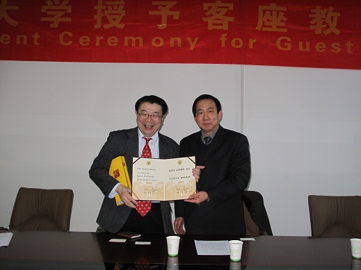 12月27日下午,我校举行仪式聘请日本东京大学山本昌宏(Yamamoto Masahiro)教授为客座教授。副校长刘京南教授出席了仪式,发表了热情洋溢的致辞,并为山本教授颁发了证书和校徽。仪式由数学系主任刘继军教授主持。国际合作处、数学系的领导和相关师生参加了受聘仪式。仪式结束后,山本教授为全校理工科研究生做了一场关于“数学在钢铁工业的应用”的精彩报告。