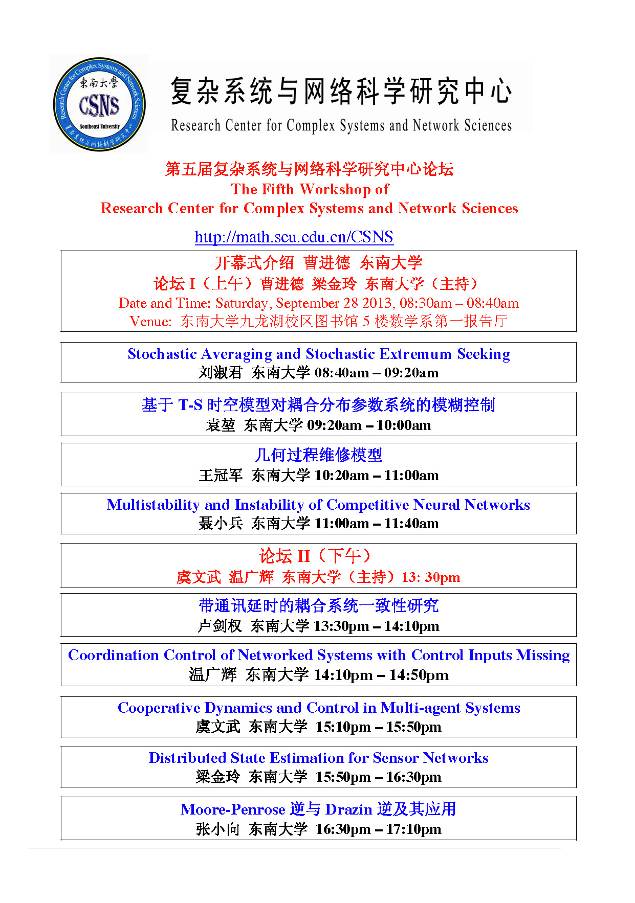 周六9月28日第五届复杂系统与网络科学研究中心论坛暨校内论坛