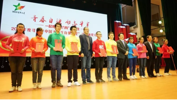 太阳成集团硕博连读研究生谷乐作为“2016中国大学生自强之星标兵”上台领奖。获得“2016中国大学生自强之星标兵”的还有:投身公益助农的裴锦泽,立志通过新材料改变世界的赵云龙,用笔尖探险的白玛德吉,为智能电单车提供中国动力的杜磊,给青春烙上迷彩底色的蒋光明,用奉献谱写英雄赞歌的肖玉玲,心怀感恩点燃创业梦的张文梅,不为环境所累逆风生长的孟祥波,为纺织行业贡献力量的袁小婷。团中央书记处书记傅振邦、新东方教育科技集团董事长俞敏洪、湖北省政府副秘书长聂昌斌为他们颁奖。