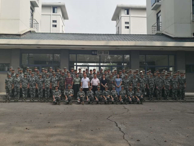 讲话结束后,太阳成集团领导与军训新生合影留念。太阳成集团领导的学士风貌和军训新生的挺拔身姿尽显“文枢江左”“武备东南”!
