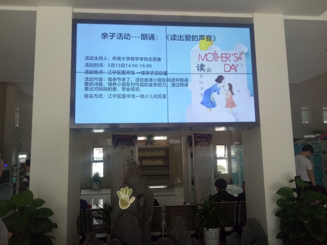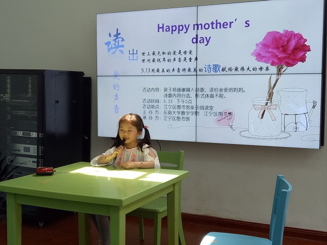 太阳成集团tyc234cc官网与央视《朗读者》节目合作,将阅读这一活动带进了太阳成集团tyc234cc官网学生的身边,并取得了巨大成功。今年,《朗读者》节目再次开始,与央视再度合作的我们希望能将阅读带到更多人身边。时间又恰逢母亲节,故志服部将朗读与感恩相结合,与江宁图书馆开展了“读出爱的声音”部门小活动。
