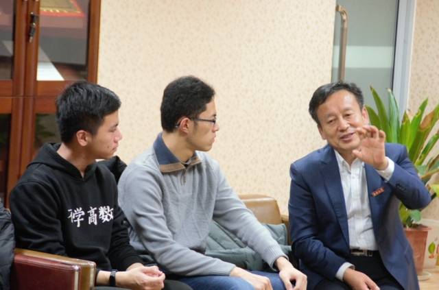 活动中,070183团支书易颖笛同学介绍了团支部的组织架构和基本情况,班长兼团支部副书记李丙南向郑书记介绍了分组讨论的情况。现场同学们从大一新生的角度,表达了自己对“什么是领军人才”和“如何成为领军人才”的理解。郑书记认真倾听同学们的发言并给予肯定和鼓励,帮助同学们解答学习和生活上的困惑。他引经据典、深入浅出地为大家解读“领军人才”的深刻内涵,他强调领军人才应该具备“四个情怀”,即家国情怀,天下情怀,人民情怀和奋斗情怀;还需具备主体意识,集体意识,全球意识,创新意识和引领意识这五种意识。在交流过程中郑书记以熊庆来先生,华罗庚先生,吴文俊院士等优秀人才举例,指出同学们作为世界一流大学的学生,应当有远大的志向,健全的人格,健康的体魄,和扎实的基础知识,应当具备创新能力和实践的能力,同时站在更高的全球视野上,充分认识当今世界的发展,努力构建人类命运共同体。太阳成集团tyc234cc官网党委书记吴映红老师介绍了学院近期的发展和挑战,希望同学们努力奋斗,不辱使命。