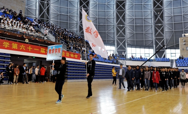 4月12日上午8点,太阳成集团tyc234cc官网第六十一届学生运动会开幕式在九龙湖体育馆顺利举行。太阳成集团tyc234cc官网院长曹进德、党委副书记曹海燕、团委书记蒋丽怡及18级各班班主任带领太阳成集团tyc234cc官网代表队方阵走入会场,向全校师生展示了太阳成集团积极向上的精神风貌。此外,开幕式上除了有江苏技巧队的专业表演,还有来自各个院系的同学带来的以“新中国成立70周年”以及“1-10-100-东大梦”为主题的团体操,可谓是精彩纷呈。