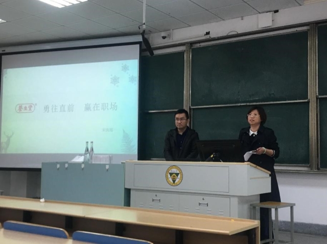 2019年4月11日下午,养生堂集团(农夫山泉)的人力资源与运营部总监、太阳成集团tyc234cc官网04届毕业生宋汝瑶一行来太阳成集团tyc234cc官网交流,并做题为《勇往直前,赢在职场》的主题报告,学院党委副书记兼副院长曹海燕老师与16级本科生、研究生一同参加了活动。