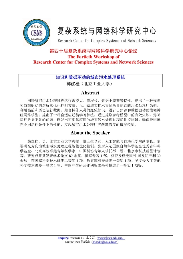 学术论坛:2020年07月02日09:00-12:00,第四十届复杂系统与网络科学研究中心论坛