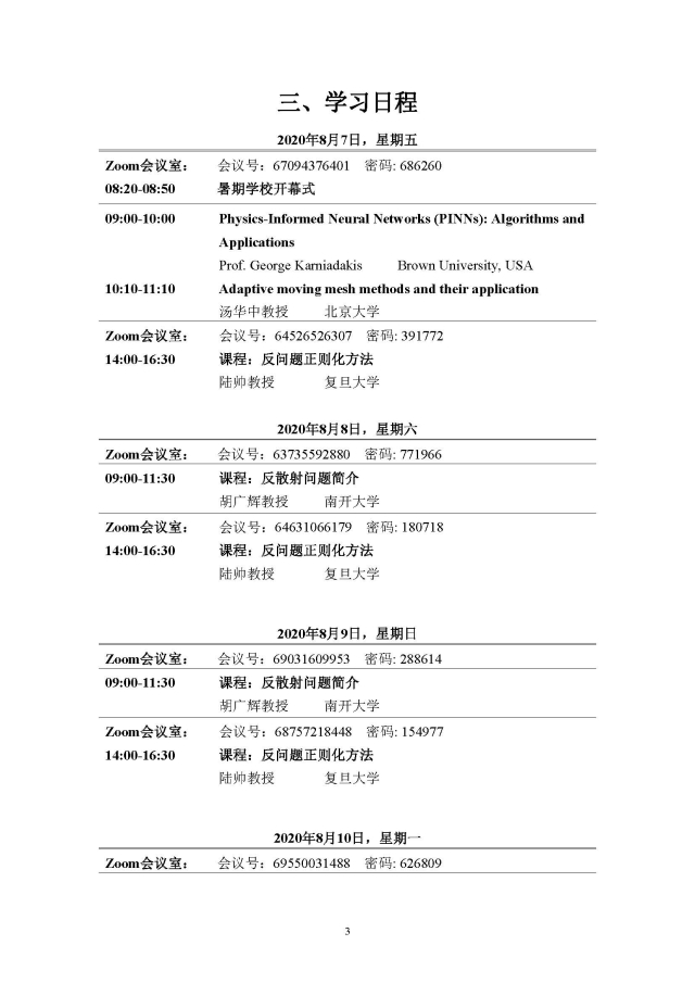 学术论坛:2020年08月07日-08月17日,2020 年江苏省研究生“科学计算与大数据分析”暑期学校