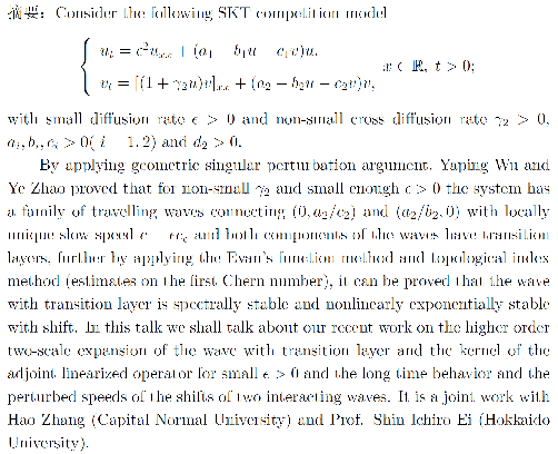 报告题目 | The Interaction of Traveling Waves with Transition Layers for SKT Competition Model with Cross-diffusion | ||