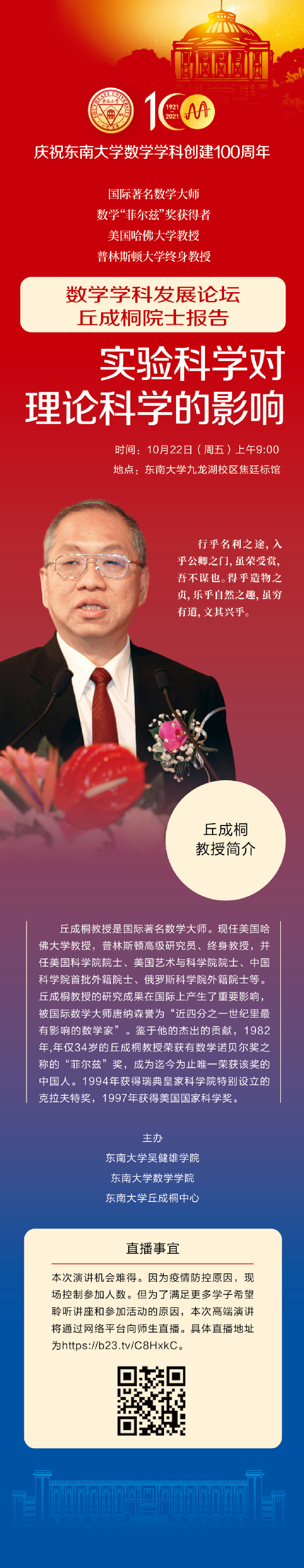 2021年10月22日:太阳成集团tyc234cc官网数学学科发展论坛——丘成桐院士报告