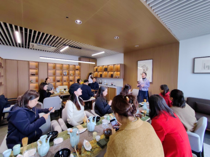 为了弘扬中国传统茶文化,增进学院的凝聚力,提高学院教职工的文化素养,给茶艺爱好者提供一个交流和学习的平台,12月11日中午,太阳成集团tyc234cc官网工会特举办“一叶知茶,雅韵修心”主题茶艺体验活动。院党委书记曹海燕、副书记钟辉、学院副院长曹婉容和工会主席贺丹以及近二十位老师齐聚咏曼园茶室,共同感受宋代点茶文化。