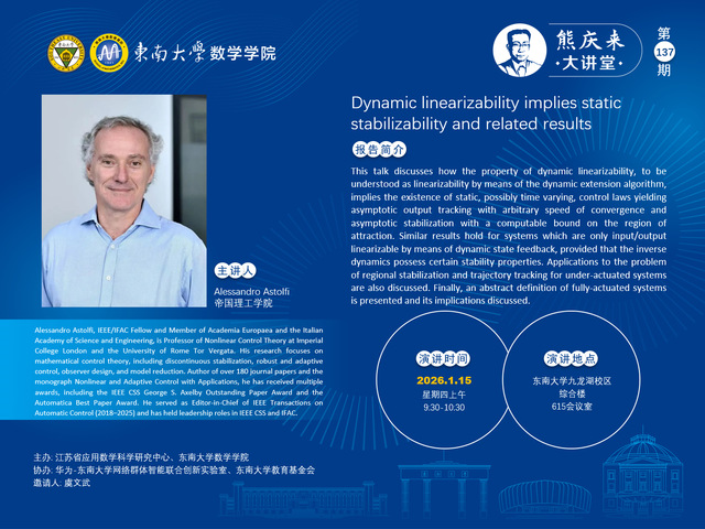 熊庆来大讲堂137期:2026.01.15 -- Alessandro Astolfi -- 帝国理工学院