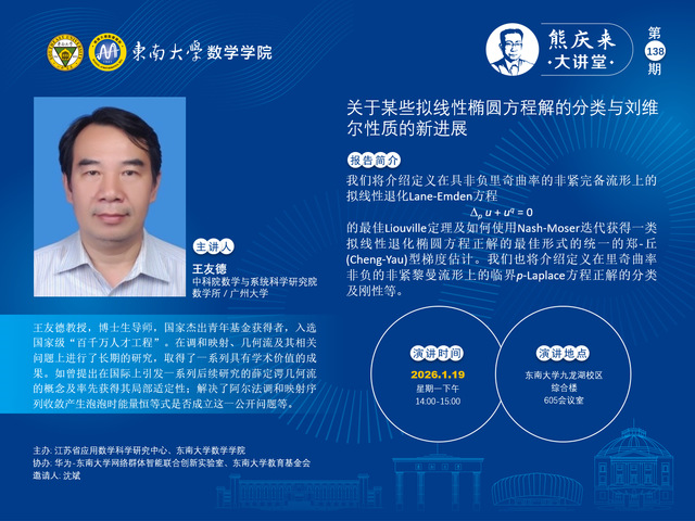 熊庆来大讲堂138期:2026.01.19 -- 王友德 -- 中科院数学所